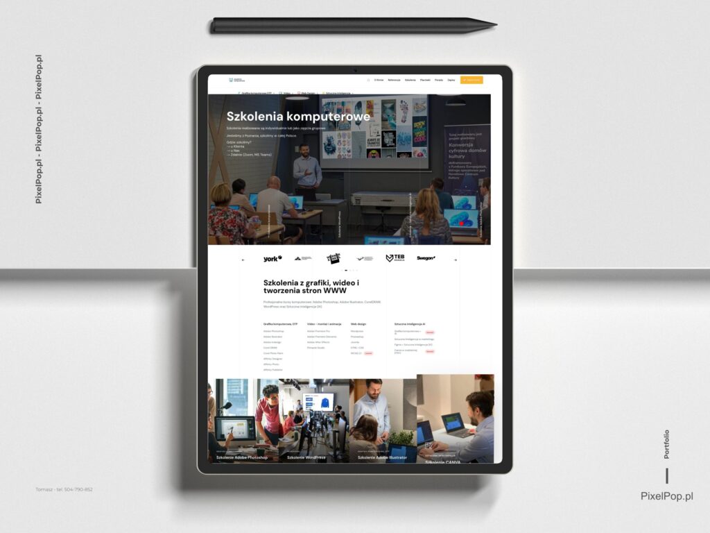 Akademia KomputerowaSystemy CMS / WordPress / Responsive Web Design Akademia Komputerowa Zaprojektowaliśmy nowoczesną platformę edukacyjną, która w intuicyjny sposób prezentuje bogatą ofertę kursów IT i grafiki. Skupiliśmy się na przejrzystej strukturze (UX), która ułatwia użytkownikom znalezienie odpowiedniego szkolenia i szybki zapis. Szczegóły Klient: Akademia Komputerowa Data: Luty 2024 Usługa: Projekt UI/UX & Wdrożenie WordPress www.akademia-komputerowa.pl